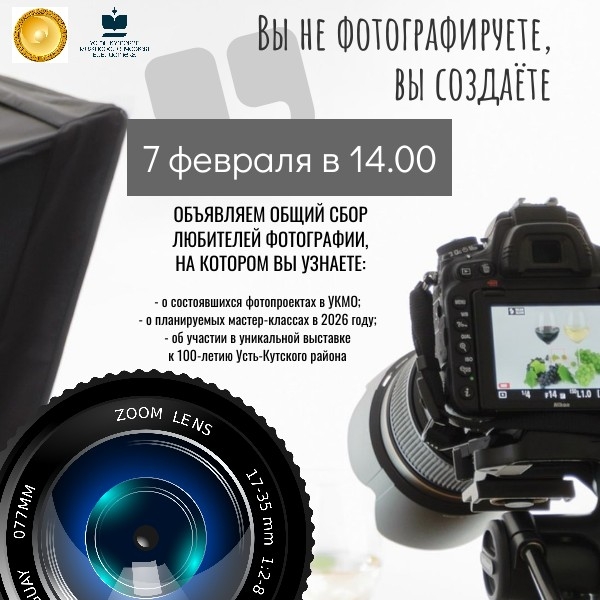 Приглашаем на встречу с коллегами и единомышленниками всех, кто любит наш северный край, учится фотографировать и хочет поделиться своим творчеством с земляками. Место встречи: Усть-Кутская межпоселенческая библиотека, Речников, 42. Время встречи: 14.00. Просто с нами интереснее!